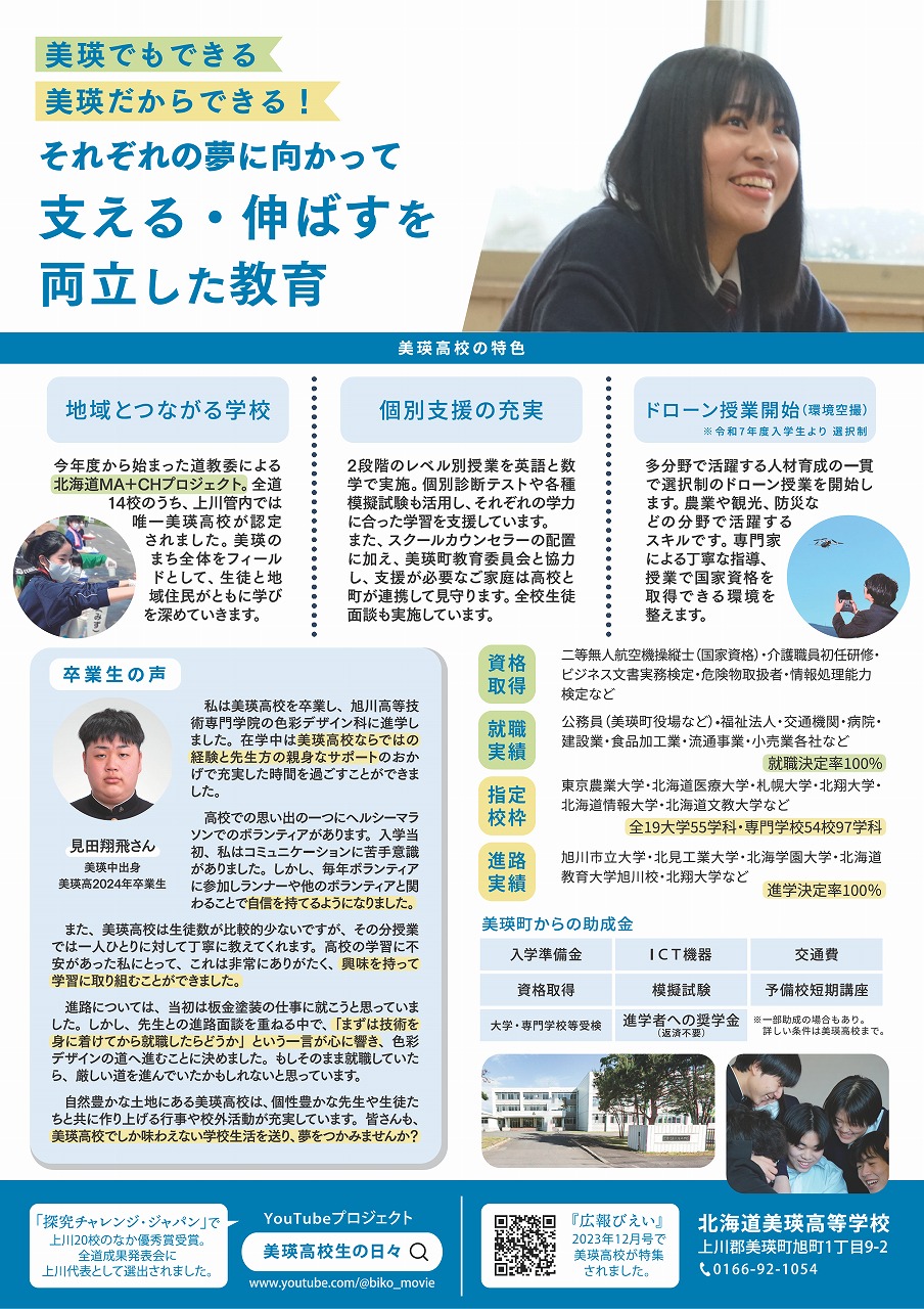 北海道美瑛高等学校 --------------------------------------------------------- <お知らせ> 令和7年12月19日(金)の9:00から 15:00までは、ウェブページの動作の確認を行っていますので、御承知おきください。