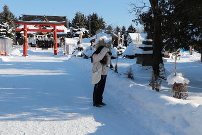 1月6日(火)冬休み中の午前、写真部が動き始めました。この日は晴れて風もなく青空が広がっていましたが、朝から-17℃の世界でした。まずは例年恒例の美瑛神社への初詣。今年も1年健康に活動できますようにとお参りさせていただきました。美瑛町のパワースポットの一つである美瑛神社で力をいただきながら、雪景色を撮影しました。その後、美瑛町役場の展望台(四季の塔)から美瑛町をぐるりと望み、美しい景色の町にいる喜びを実感しました。今年もたくさん写真を撮って発信していきます。