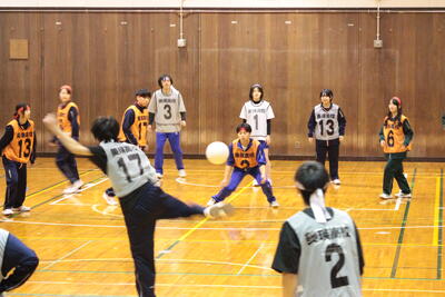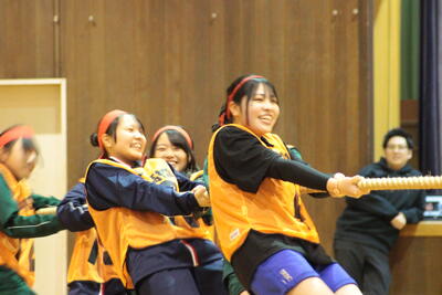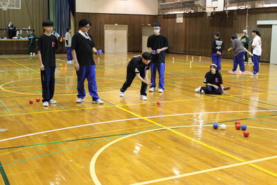 12月19日(金)、体育祭が行われました。クラス対抗ではなく、紅白に分かれて学年の垣根を越えて実施されました。紅白リレー、綱引き、ドッジボール、バスケットボール、バレーボールに、障害物リレー、ボッチャ、モルックが加わりました。種目によっては得意なチームと不得意なチーム同士の対戦もあり、和気あいあいと競技は進みました。
